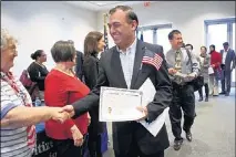 Then the person takes the American citizenship oath during a ceremony like the one Wednesday. In it, new citizens renounce any allegiance to another country, promise to follow American laws and swear to bear arms when required.